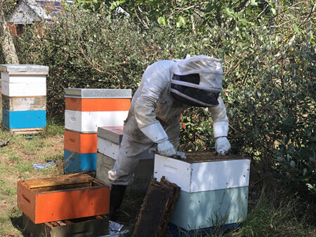 Martin checking through the honey frames at Horsham Downs before harvesting the honey