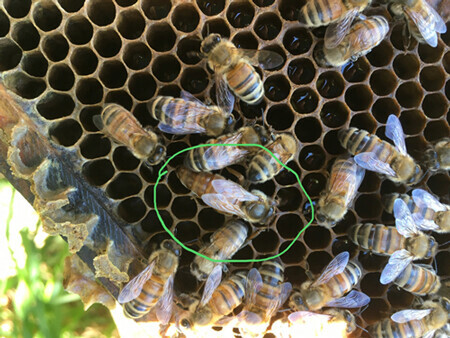 A photo of one of our queen bees (see how long her abdomen is compared to the worker bees?)