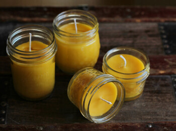 You can also scent your candle wax between the wax melting and pouring the candle. Essential oils don't like high heat so the scent may not be strong. Try adding 2-4 teaspoons of oil to 500g of beeswax. I'm planning on making citronella candles to have on our outdoor table this summer.