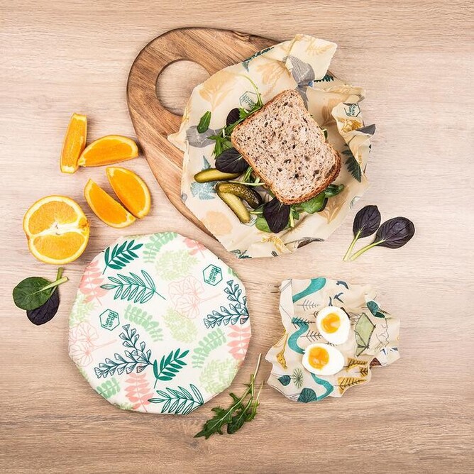 Honeywrap is made with 100% organic cotton blended with beeswax, tree resin and jojoba oil. This perfect combination makes the cloth tacky which can then be shaped over your food and dishes. It looks great and can be used again and again... and most importantly it reduces waste, so is good for our planet. Keep your food fresh and your conscience free! I love it.