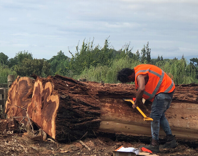 The redwood trees bark has been taken off in the traditional Maaori way and are being used as roofing for the houses in the Te Parapara garden at the Hamilton Gardens and we are milling up the heart wood to replace fencing damaged by the storms. Even the sap wood will be used around a hut down at our pond.